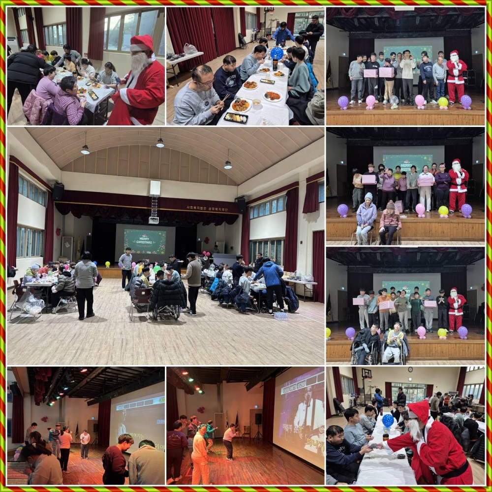본문 2025년 크리스마스 행사 진행하였습니다.산타의 선물 증정식과 생일파티..그리고 노래자랑을 하였습니다.맛있는 음식을 먹으며 거주인과 직원들 모두 즐거운 시간을 보냈습니다! 댓글목록 등록된 댓글이 없습니다. 목록